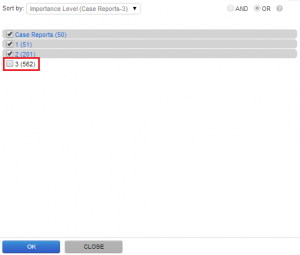Например, если в приведенном выше примере, где мы отбирали Постановления ЕСПЧ, касающиеся доступа к суду в рамках гражданского процесса, избавиться от Постановлений 3-й степени значимости, то число найденных документов сократится с 864 до 302!